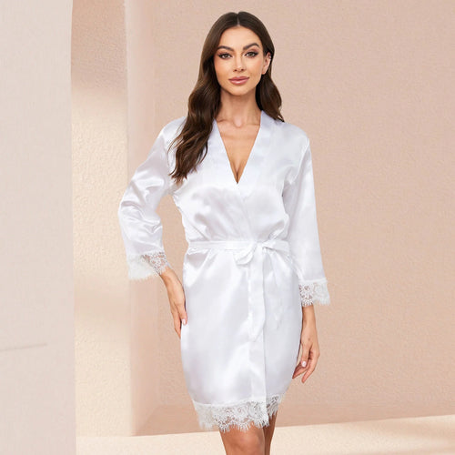 exy Lingerie, LOFIR Silk Satin Pajamas for Women, Womens Summer Pajamas Pjs Sets of 4 Pcs with Floral Lace Top Shorts and Robe, Gift for Women