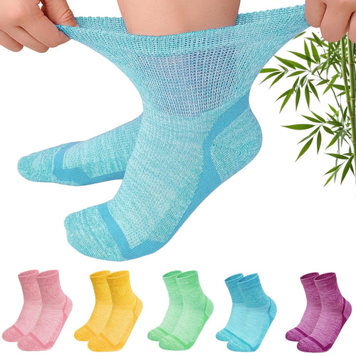 Diabetic Socks for Women,Above Ankle Loose Top Non-Binding Comfort Wide Calf Socks for Sensitive Feet, 5 Pairs
