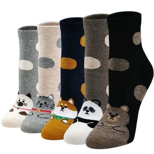 Women's Cotton Animal Polka Dot Crew Socks, Multicolor (5)